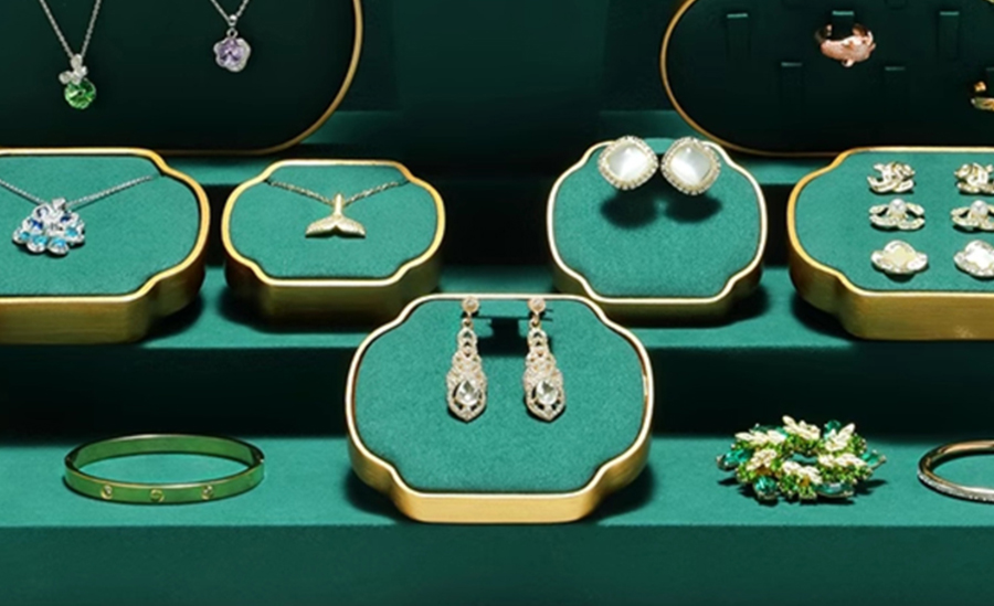 FADELI Custom Store Display Deluxe Microfiber Fashion Jewelry Display Rings Pendants Earrings Display Set