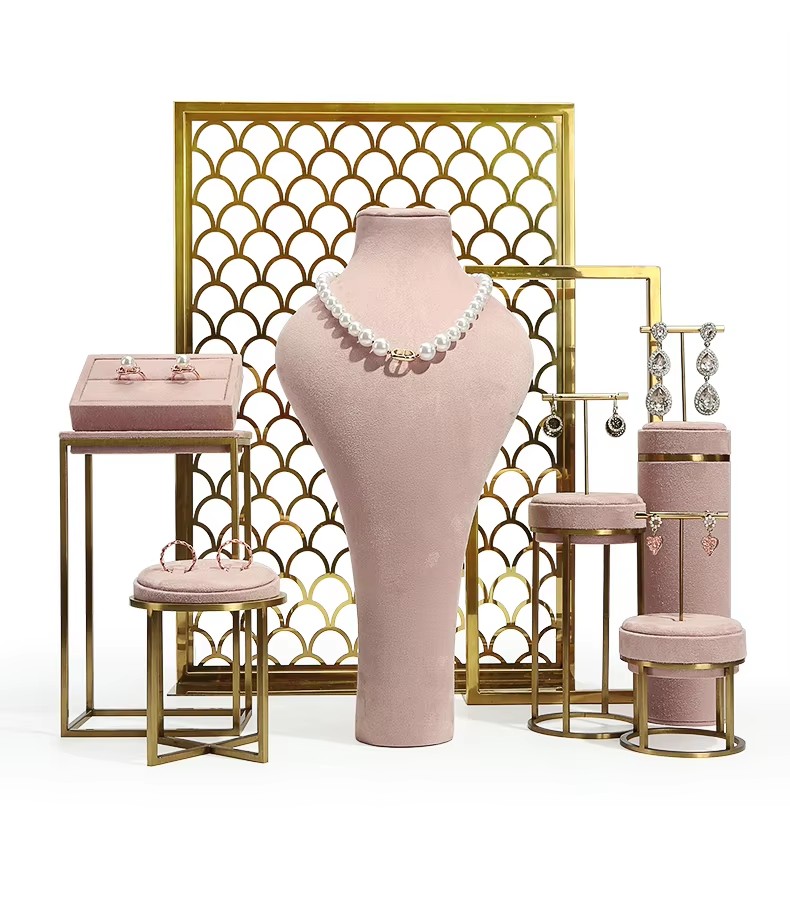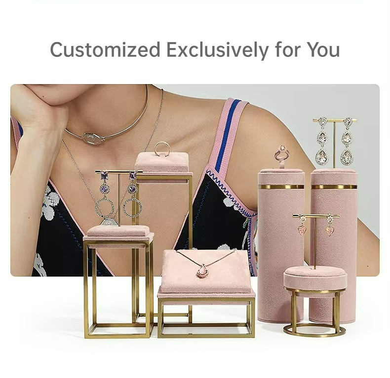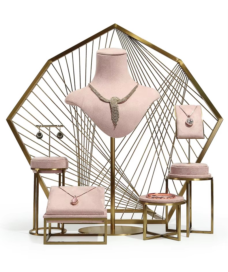 FADELI Factory-customized Suede Leather Jewelry Display Stand for Necklace Bracelet Ring Metal Jewelry Display Props