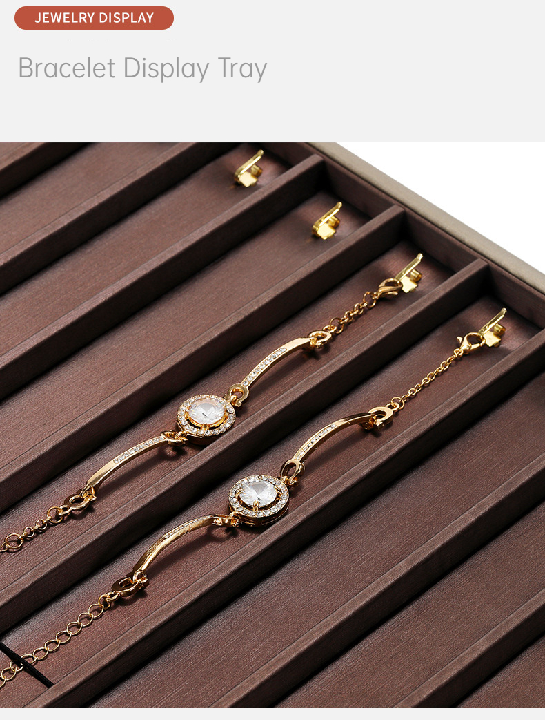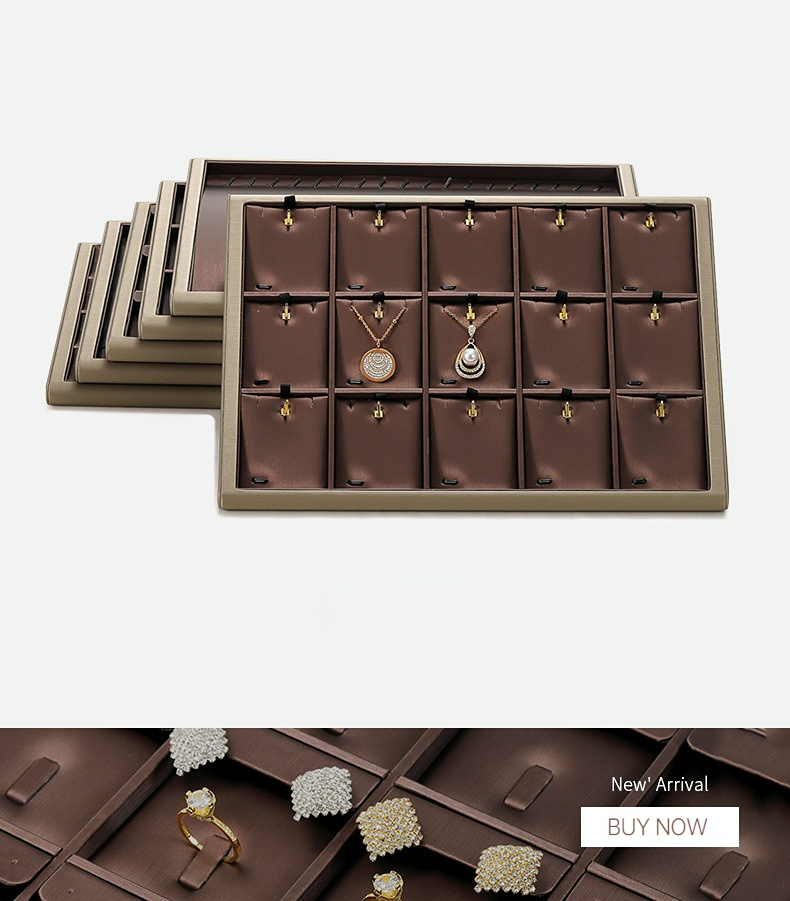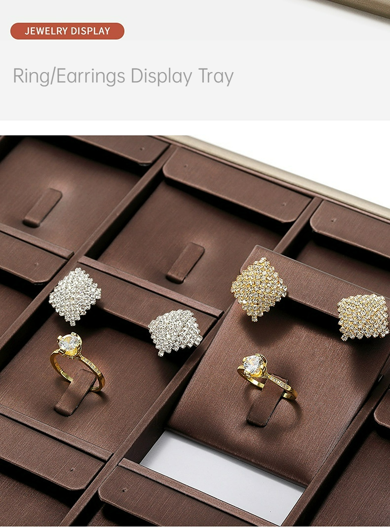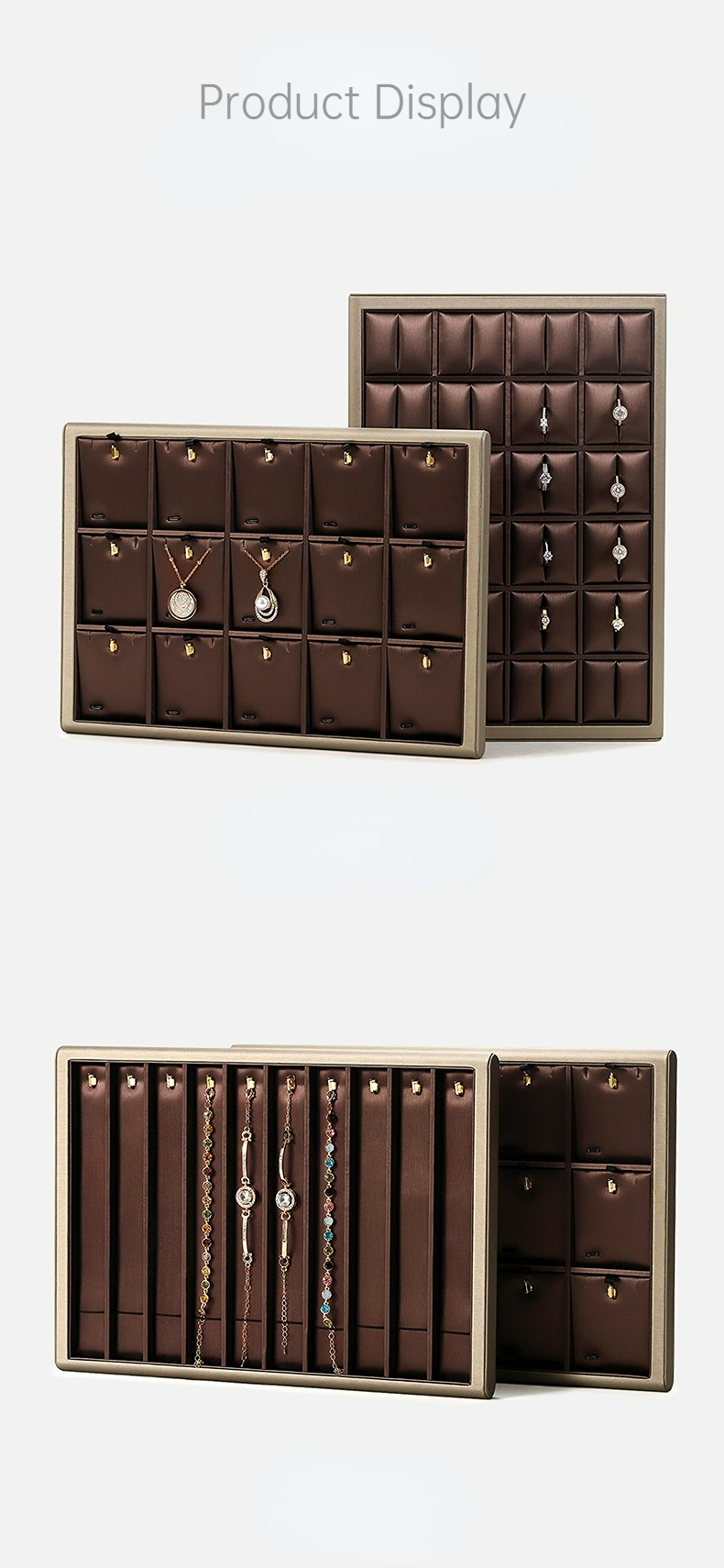 FADELI New High-end PU Jewelry Display Trays Jewelry Rack Holder for Necklace Chain Ring Earrings Bracelet Coffee