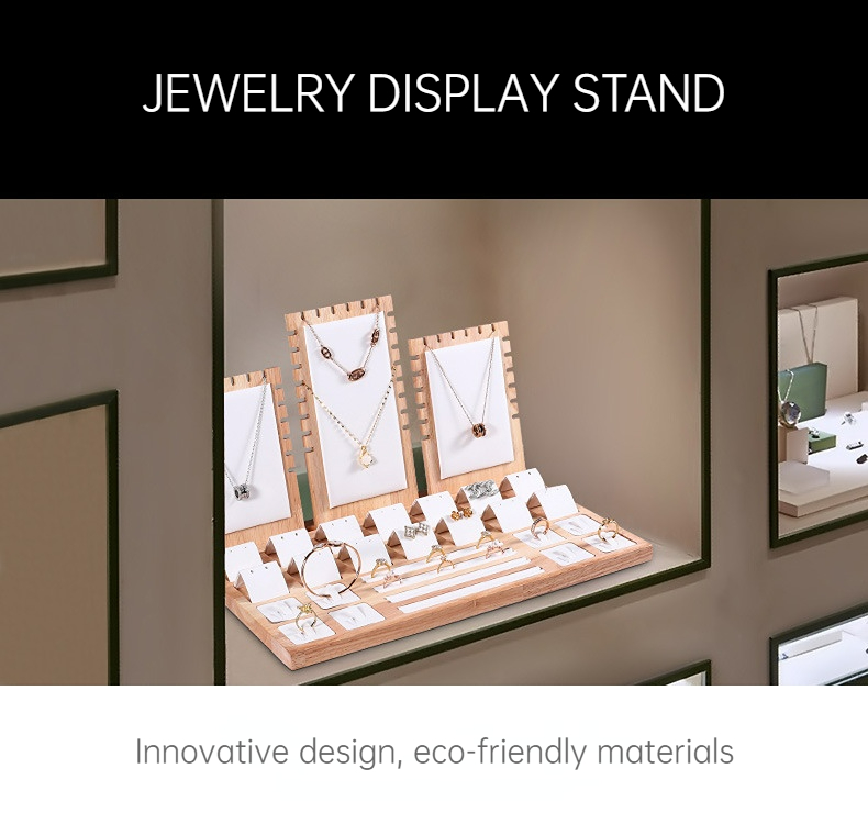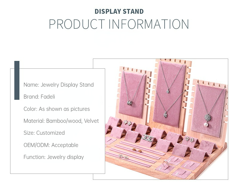 FADELI New Solid Wood Jewelry Display Tray Jewelry Display Stand Velvet/PU Leather Jewelry Display Props for Necklace Bracelet Ring