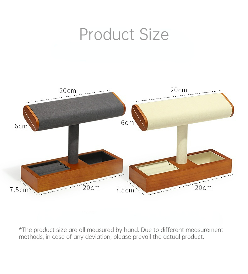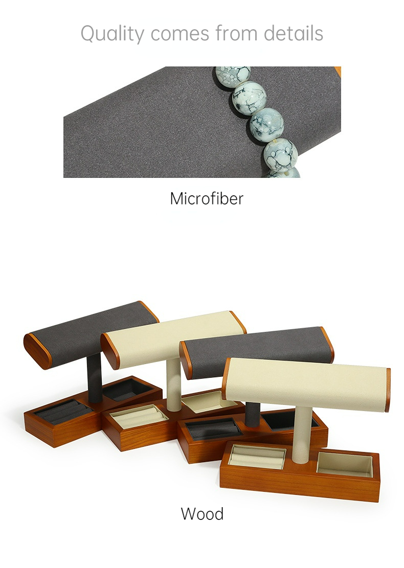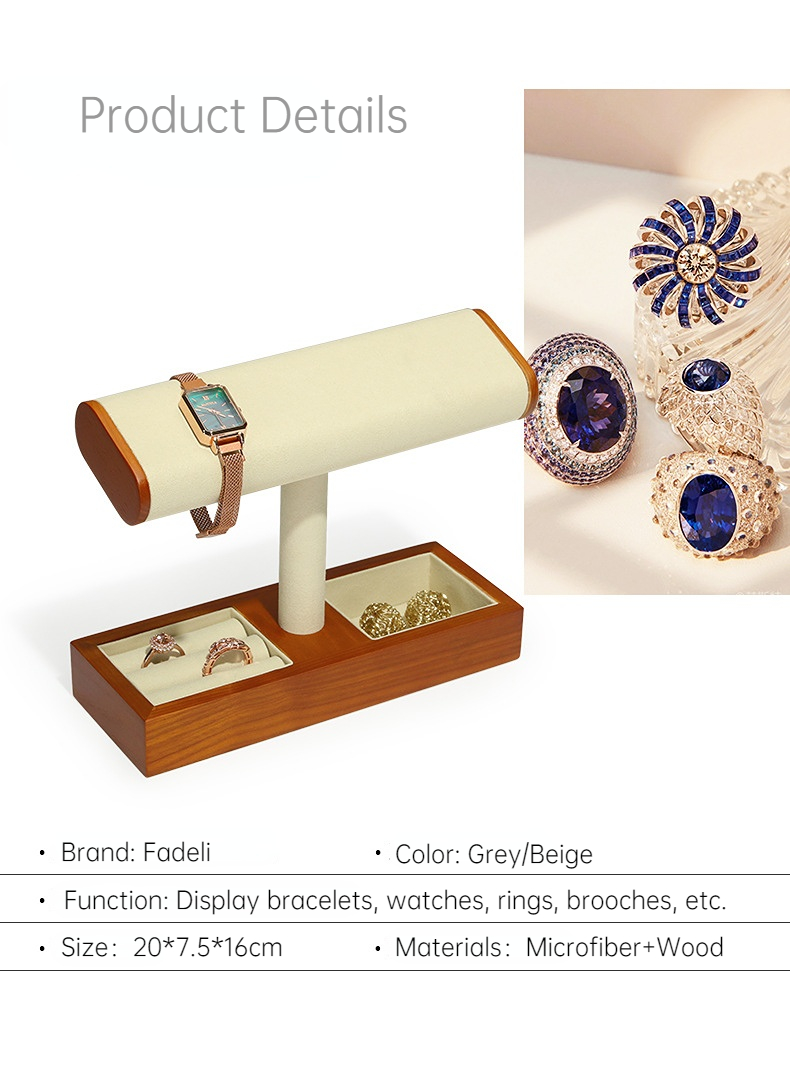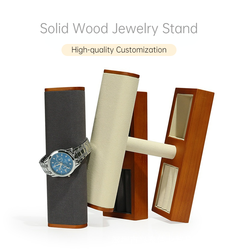 FADELI New T-Shaped Microfiber Wooden Watch Display Stand Jewelry Display Holder for Watch Necklace Bracelets Storage and Display