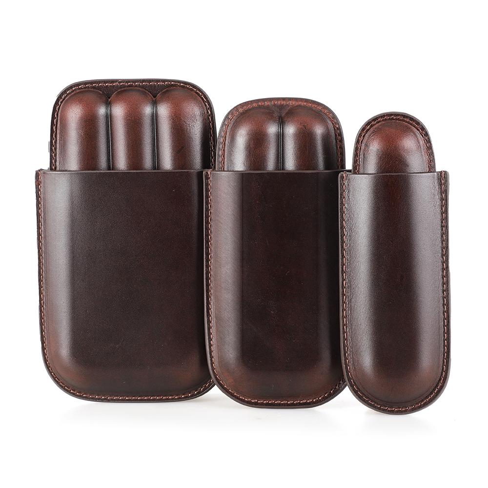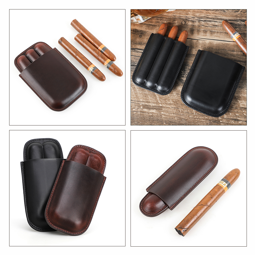 FADELI OEM Custom Genuine Leather Travel Humidor Cigar Box 1-3 Finger Tube Wholesale 1 2 3 Finger Cigar Case for Men