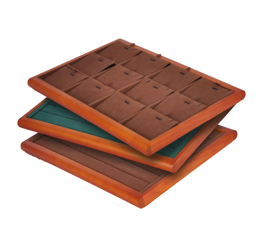 FADELI Wholesale Custom Wooden Grain Tray for Pendant Ring Bracelet Display Stackable Jewelry Tray
