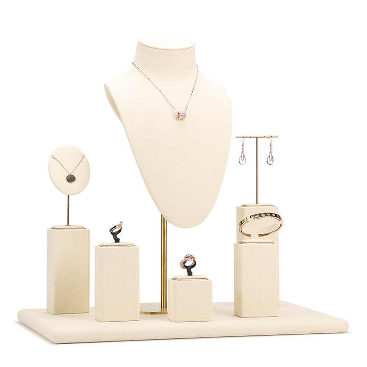 Luxury Ultra-fine Fiber Necklace Ring Bracelet and Earring Display case Black and Beige Jewelry Display